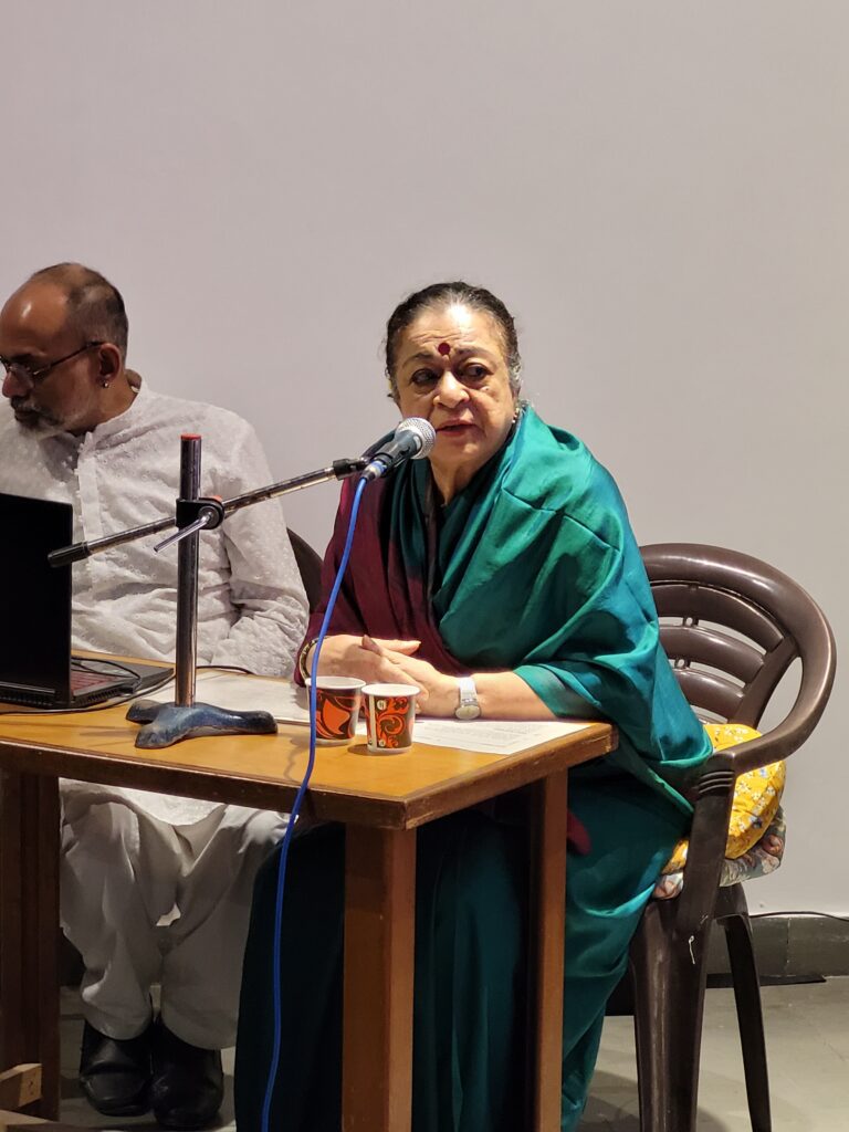 The lecture provided rare insights into her creative process, her early years in the art world, major retrospectives, and her public commissions in India and abroad. It also traced her continuing commitment to socially conscious art and community engagement.