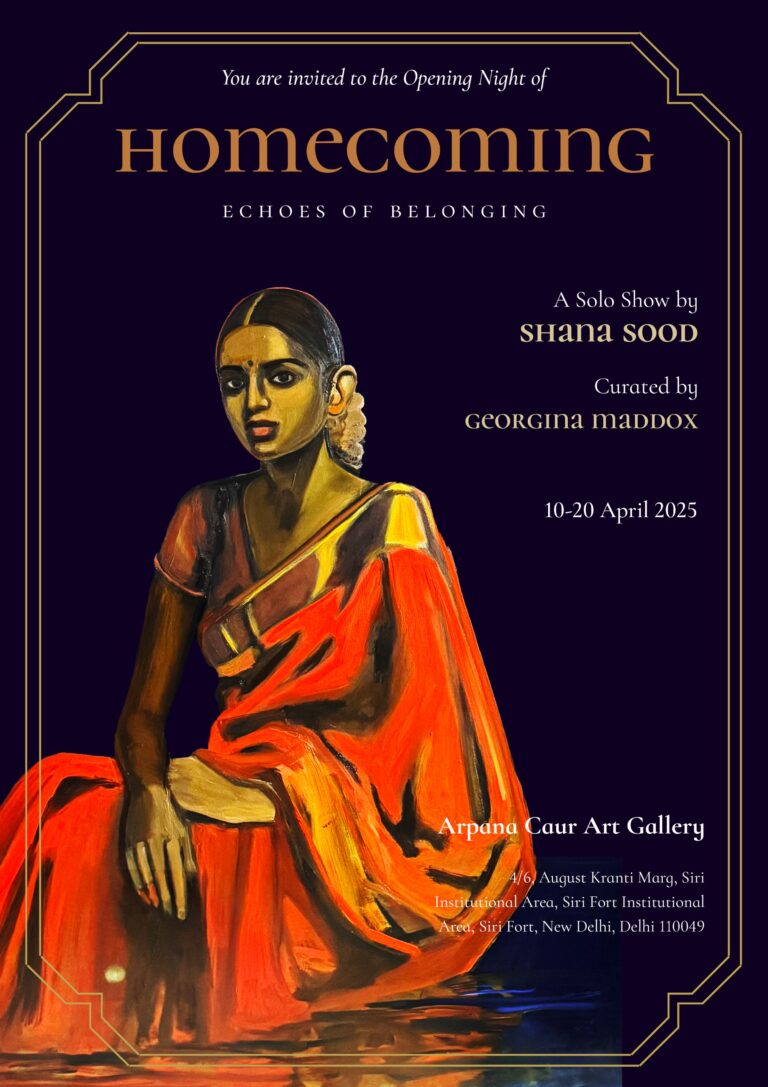 The Academy of Fine Arts and Literature presents Homecoming: Echoes of Belonging, a solo exhibition by Shana Sood, curated by Georgina Maddox. Through evocative portraits and layered narratives, the works reflect on identity, memory, and cultural roots. On view from 10–20 April 2025 at the Arpana Caur Art Gallery, the show invites viewers to journey inward and rediscover the intimate ties that shape belonging.
