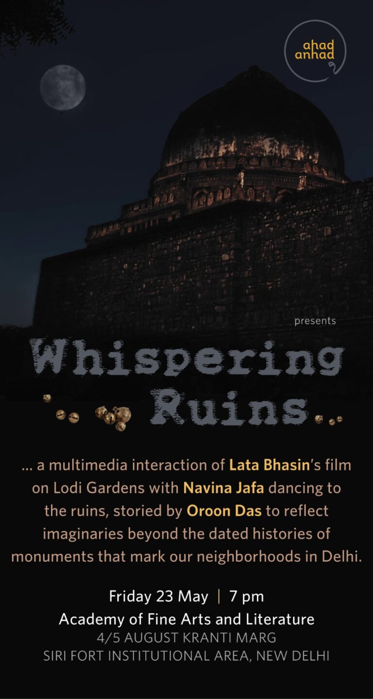 The Academy of Fine Arts and Literature hosted Whispering Ruins, a multimedia interaction weaving film, dance, and storytelling. Featuring Lata Bhasin’s film on Lodi Gardens, Navina Jafa’s evocative dance, and narratives by Oroon Das, the performance reimagined Delhi’s monuments beyond their dated histories. Through sound, movement, and memory, the evening offered audiences a layered reflection on heritage and the living spirit of our neighborhoods.
